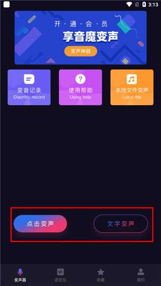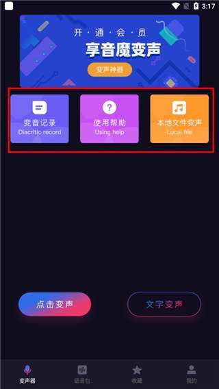 6、返回首页,这里有变音记录,使用帮助和本地文件变声;