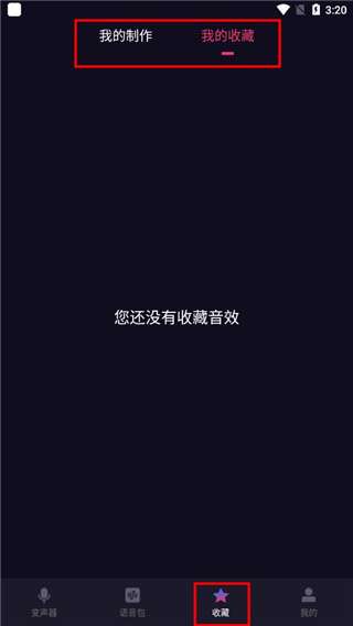 9、选择“收藏”,这里能够看到自己变音的记录和收藏的喜欢音效;