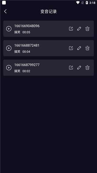 7、选择变音记录就能看到自己的变音音频,反复回味;