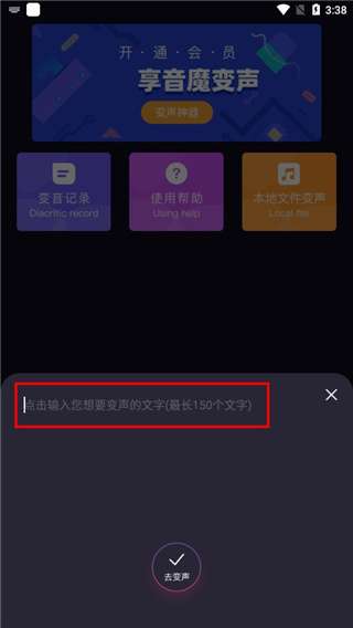 4、打开后在文本框内输入想要变声的文字,选择去变声;