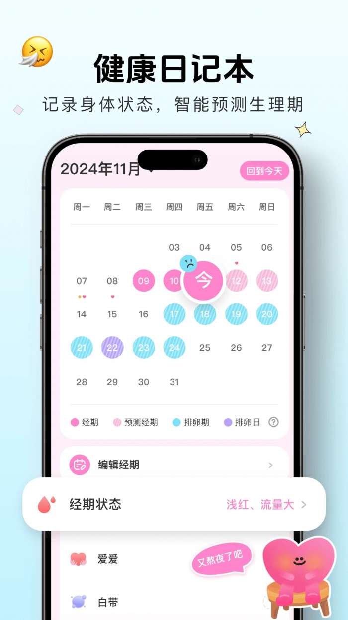 3、贴心提醒助手:个性化预测下次月经,及时温馨提醒。