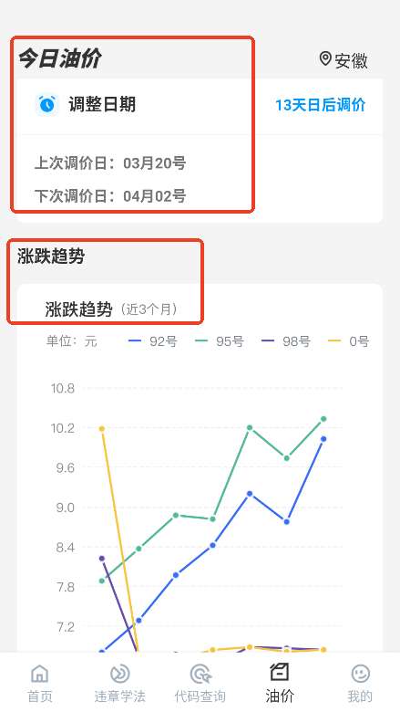 1、【石油价格走势】各等级石油价格变化趋势图形显示。