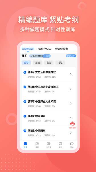 4、双证书考试准备:同时支持导游资格证书和表演代理考试,满足多样化的职业发展需求。