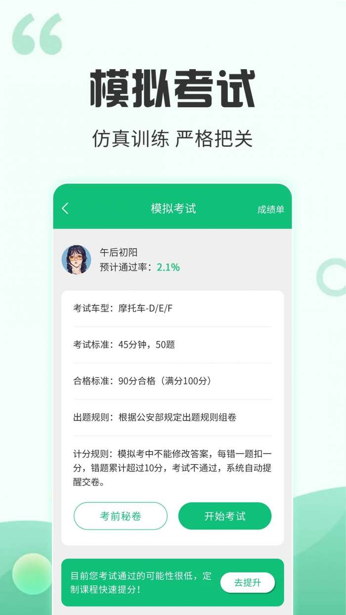 2、一站式服务:提供从注册到获得驾照的全过程支持,使学习驾驶变得简单快捷。