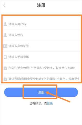 4、最后,输入用户名,身份证号码,密码等信息,点击注册即可。