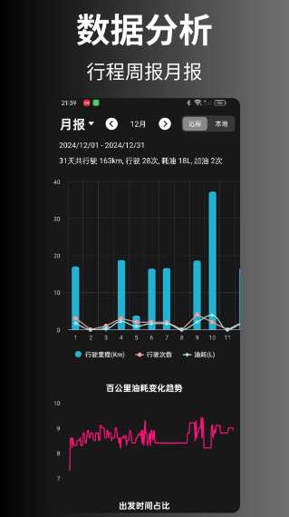 2、全面的车辆数据记录:包括行驶轨迹、油耗、速度等。帮助车主了解自己的驾驶习惯。
