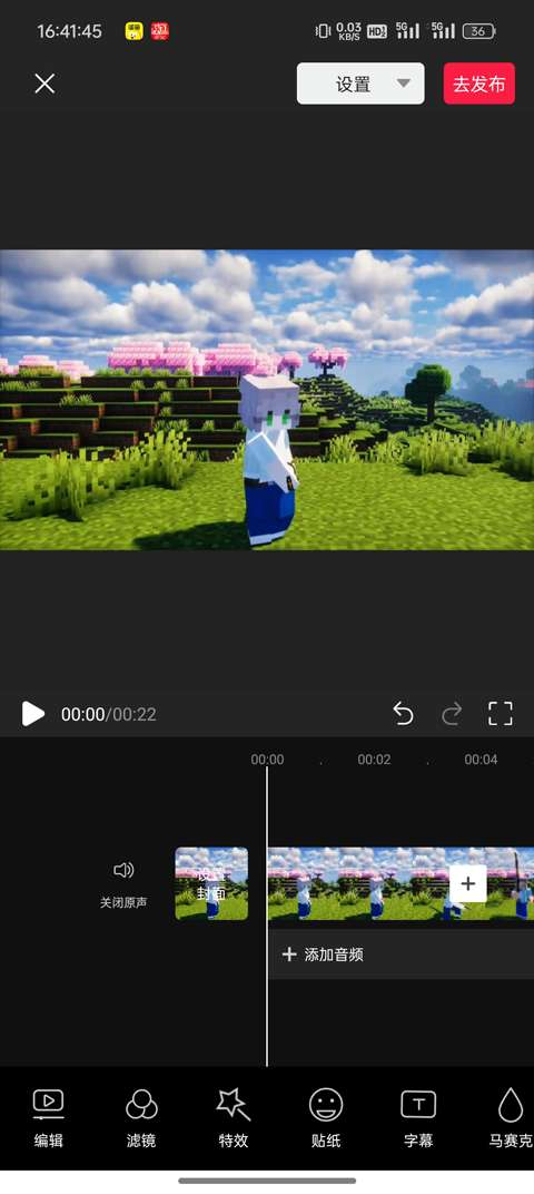 3、视频拍摄完成后,可进行简单剪辑或添加特效,然后点击【去发布】;