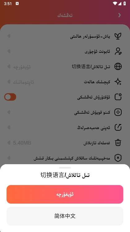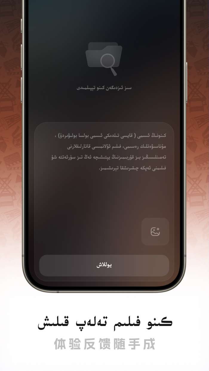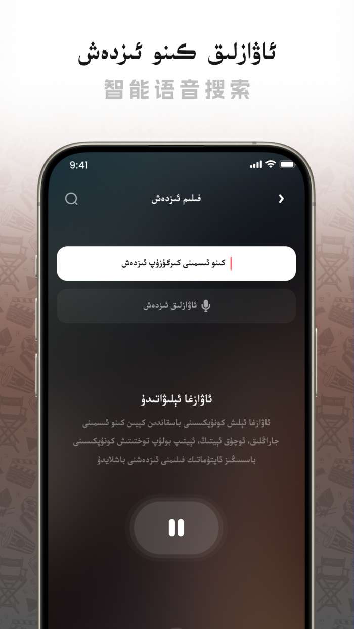分类页:按类型(电影、电视剧、综艺、音乐)或语言(维吾尔语、汉语)筛选资源。