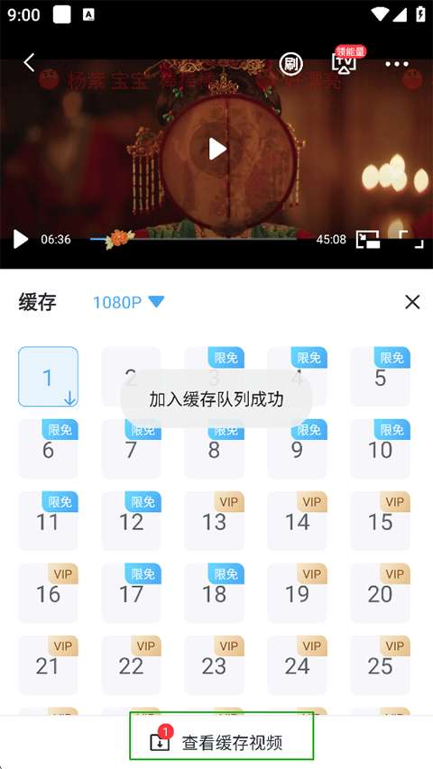 3、选择需要下载的集数,在下方缓存列表中查看。