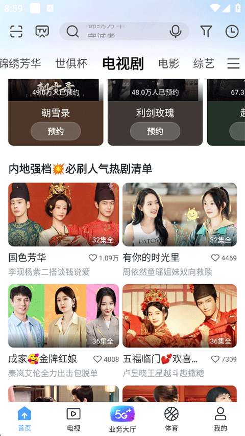 1、打开咪咕视频爱看版,在首页搜索你感兴趣的电视剧电影内容。