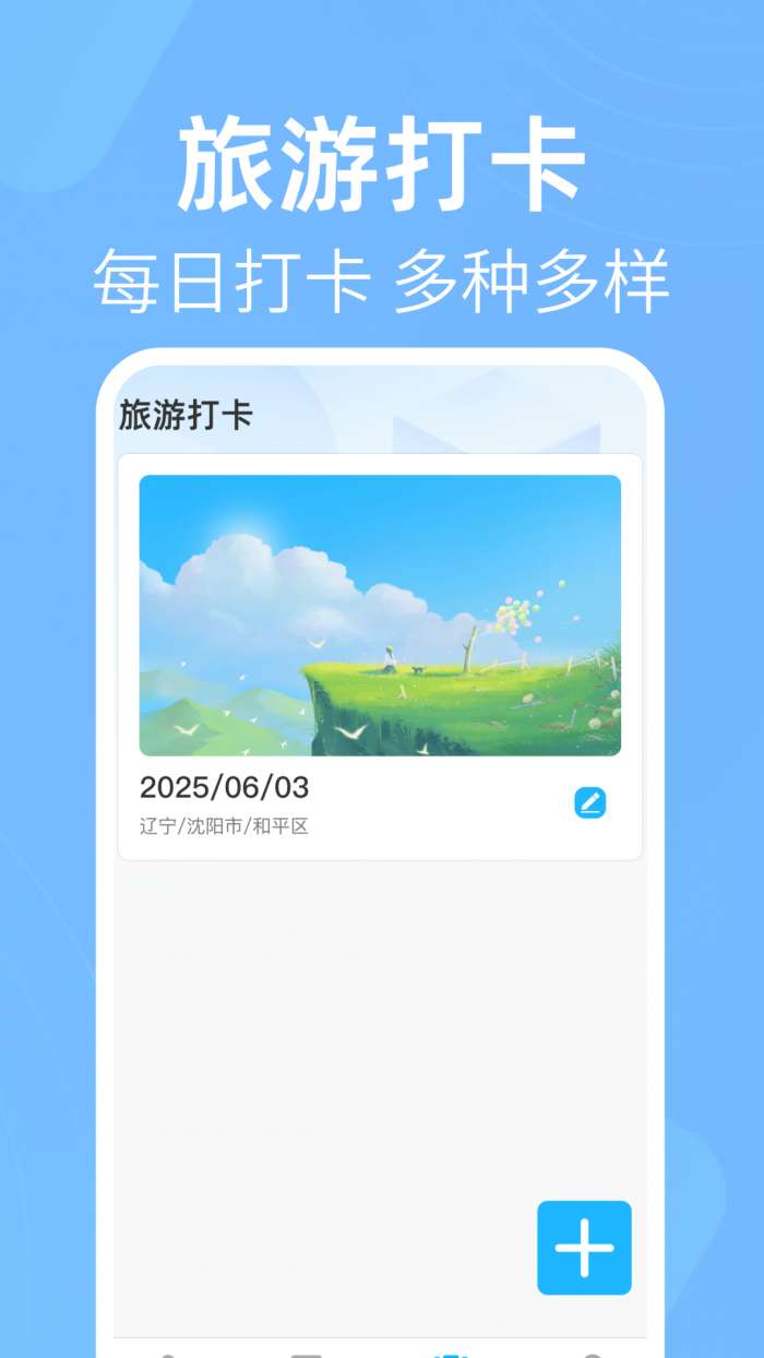 1、旅游打卡:可一键记录出行定位与打卡日期,自动留存行程地点信息,帮您清晰记录每一段旅途足迹,随时回顾出行轨迹,留存旅途美好瞬间。