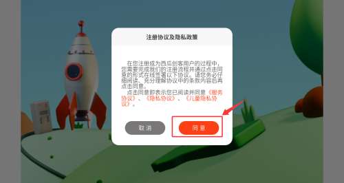 1、在注册协议及隐私政策窗口点击"同意",即可进入应用。
