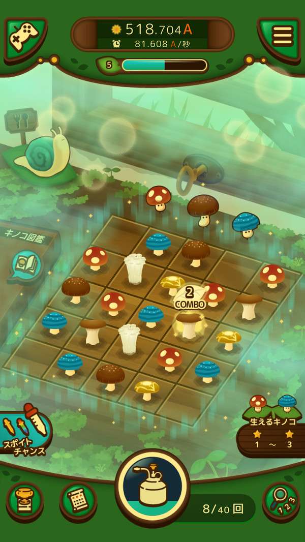 3、这样就会有源源不断的蘑菇在土里慢慢的生长发育,你的可以快速的合并留出空的土地,让这些菌子开始生长。