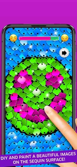 超亮片翻转仿真器在以衣服上面的亮片设计的游戏关卡,每一个挑战中会提供不同颜色的亮片还有双面的。操作很简单就是手指在亮片上面滑动就可以了还有就是大家根据自己的喜好来绘制不同的图案。可以看到最上方有一个表情的进度条,只要绘制的好看微笑的形象就会加快填满的速度。最后你获得的分数就会更多,后面有机会更换新的颜色亮片这样玩起来更加的有新鲜感。