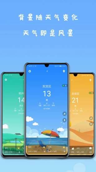 1.简单的天气内容显示,通过精美的插图向您展示当天的好心情和好天气;