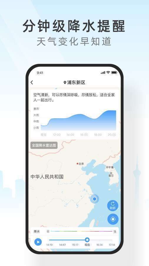 2.实时降雨预报器,预报未来预报情况,分钟级知道下雨时间,天气预报,预警信息及时提醒;