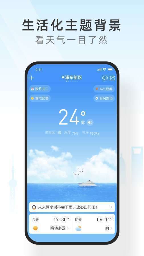 3.及早预防恶劣天气,广播天气状况,方便,更安全地使用,监测空气质量并为您的健康保驾护航。