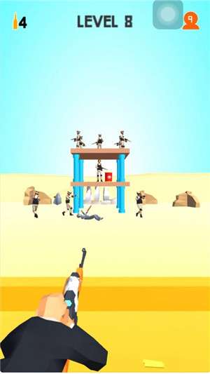 仔细观察游戏中的各种场景,找到能够利用的东西,然后用剩下的子弹杀死所有的敌人。