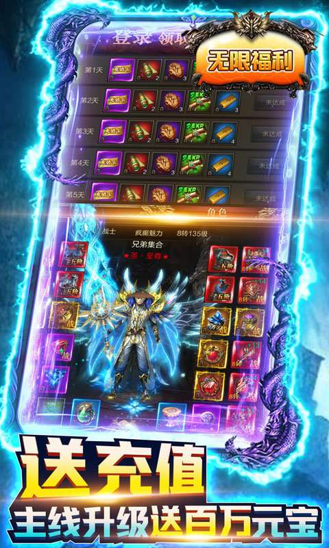 主线送充值、登录送充值、升级再送充值,BOSS无限爆百万真充,刀暴击刀刀光柱,0氪也霸服!