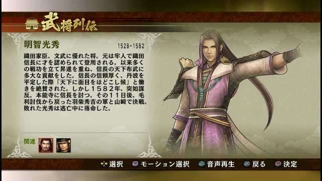 武将的属性依据往期作品的历史数据设定,如织田信长就是拥有“修罗”属性的武将。两名角色保持一定距离可以让无双技能发挥更强大的威力,无双极意不支持联合技能。濒死状态下的武将发动无双技能,效果可以延长。武将在一般和濒死两种状态下无双技能的奥义文字不同,如织田信长在一般状态下发动武将技,奥义文字是“天”,濒死状态下,武将技奥义文字是“霸”。