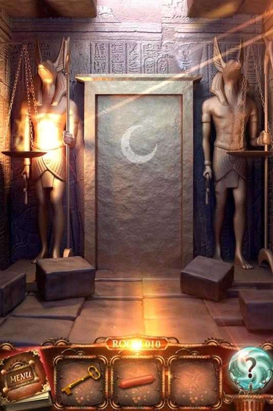 19.第十九关,选择右边架子上的一个卷轴,左边下面选的一个道具,最后在右边门把手下面的一个道具,两个键一起按下,大门打开,开始第二十关。