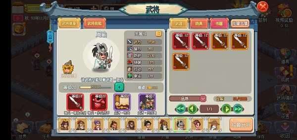 装备是提升队伍属性的关键。我自己用的是菜刀队,所以我给的装备全是提供武力和智力还有暴击,前期非常有效。解释一下,就是紫装开始就会有附加属性,有一种属性是累加,比如“携带该装备的武将每收到100点治疗就提升该装备1点武力,最高累加300”,你想想,如果孙策带着额外600武力加成的武器和防具,前期基本上就是开大秒人,所以我这菜刀队在第二章12、13级打出18级的装备图没啥问题。