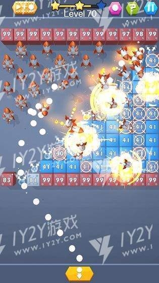 1、你需要使用自己的弹球去弹射各种砖块,来让自己获取到更多的积分;