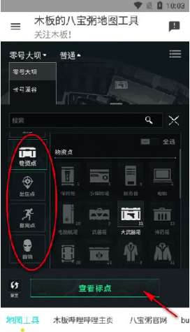 5、选择物资、出生、撤离点及首领位置,然后点击查看标点详情。