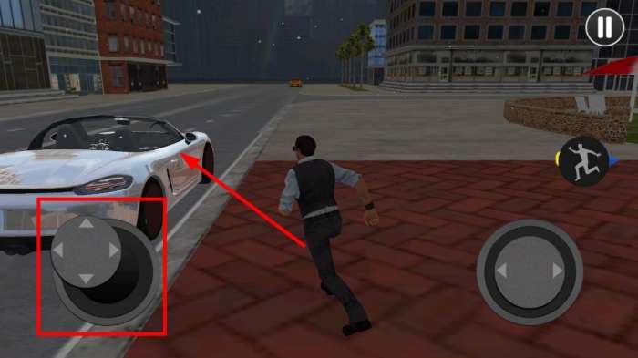 1、通过左下角方向操控按钮,移动角色靠近车辆。