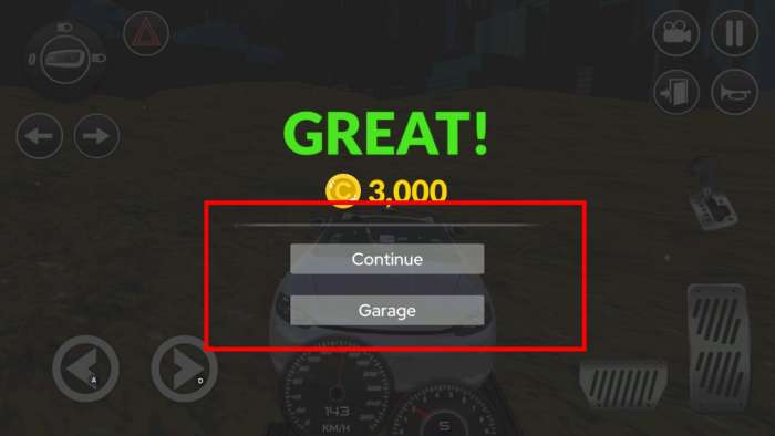 4、完成驾驶任务后,可点击“Continue”继续游戏,或点击“Garage”进入车库。