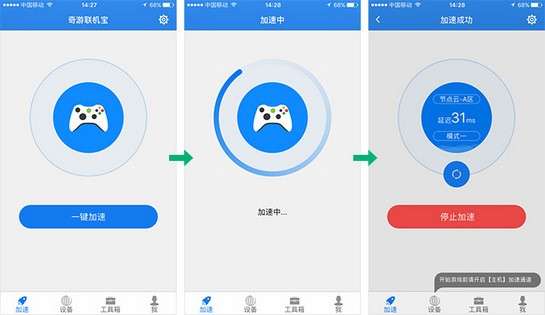 5、接下来只需要按照系统提示进行操作,最后点击“一键加速”按钮完成全部操作。整个操作过程中如果出现问题可以先尝试重启APP或使用Reset键复位联机宝。