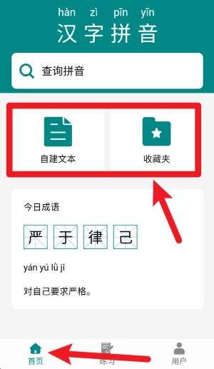 2、在首页可点击“自建文本”或“收藏夹”按钮,自主编辑内容或快速查找已收藏学习资料。