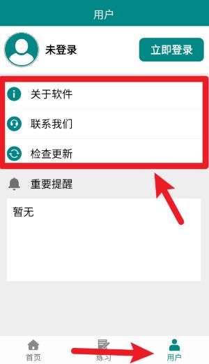 4、在“用户”页面中可查看关于软件的说明、联系客服信息以及进行软件版本更新的操作。