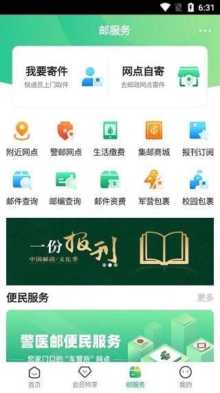 3、油服务中支持快递邮寄服务,包括上门取件、网点自寄、查询附近网点、生活缴费、报刊订阅、邮件查询等便民服务功能