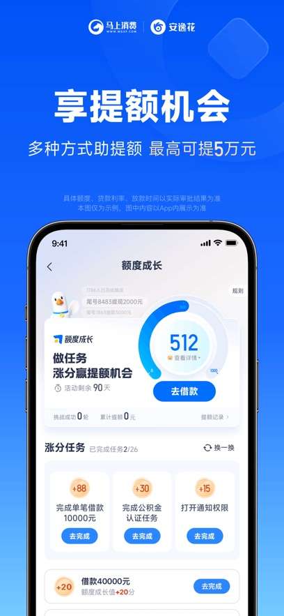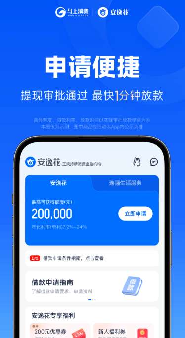 安逸花是分期贷款信用借款快速借钱平台,为马上消费金融股份有限公司推出的,一款循环额度的贷款借钱产品,用户可以在额度范围内进行分期借款贷款,在享受安全、专业、智能、便捷贷款同时,可自主提现支付。作为信贷专业大平台,额度最高可达20万元。持牌金融机构马上消费旗下产品,正规可信。信用贷款,手机借钱(借款平台,贷款平台,小额借款,小额贷款,借钱平台)就找安逸花,感兴趣的朋友不要错过下载安逸花。