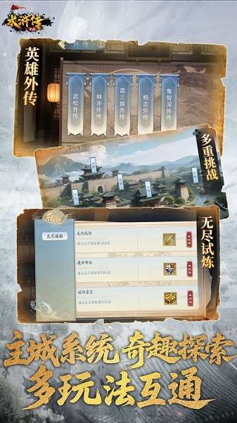 2、多模式玩法覆盖全需求:剧情模式重温经典战役,无尽试炼挑战层数极限,英雄外传解锁好汉前传,PVP竞技场实时对决,满足休闲与硬核玩家。