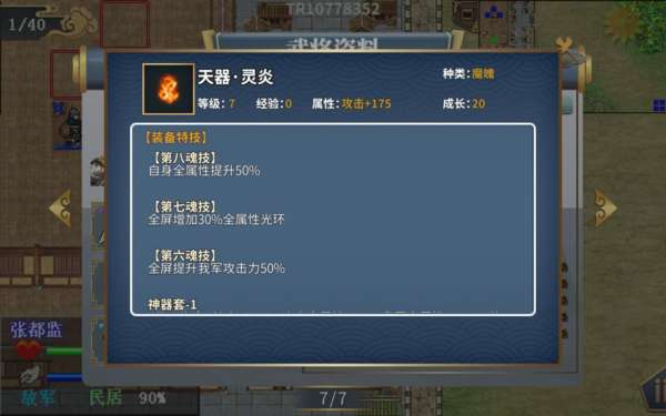 最后一关了,打就行了,注意第2回合出来个飞贼最好一回合打死,打不死敌方会多6个敌军。重点提示优先击杀张都监,这厮身上有一件神器天器·灵炎,可让敌军属性飙升,应该是bug但没办法。