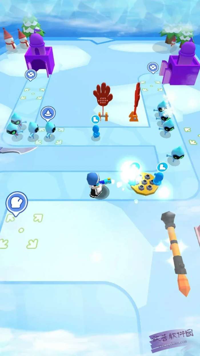 3、除了直接射击敌人外,玩家还可以在战场上布置不同类型的防御塔,延缓敌人前进的速度,给予玩家更多反击的机会。