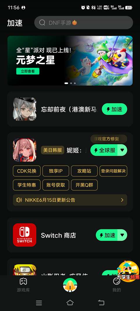 1、在本站的忘却前夜,启动游戏需要借助加速器。具体操作是,打开奇游加速器,在其中找到该游戏,接着点击游戏右侧的加速按钮。
