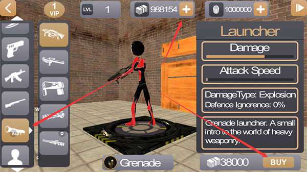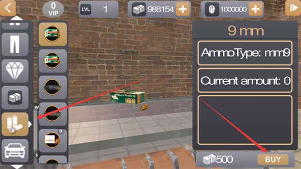 3、进入商城,即可看到已内购的货币数量。挑选自己心仪的枪支,点击“BUY”完成购买。
