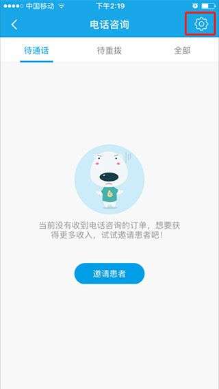 2、点击右上角的小齿轮,进入“电话咨询”设置页面。