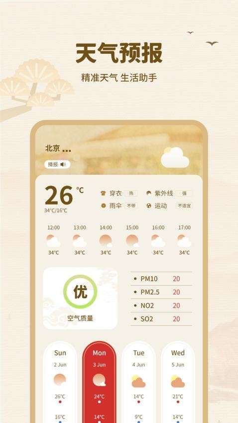 2、准确的天气预报:根据地理位置实时更新天气信息,提供未来多日的天气预报,帮助用户合理安排出行计划。