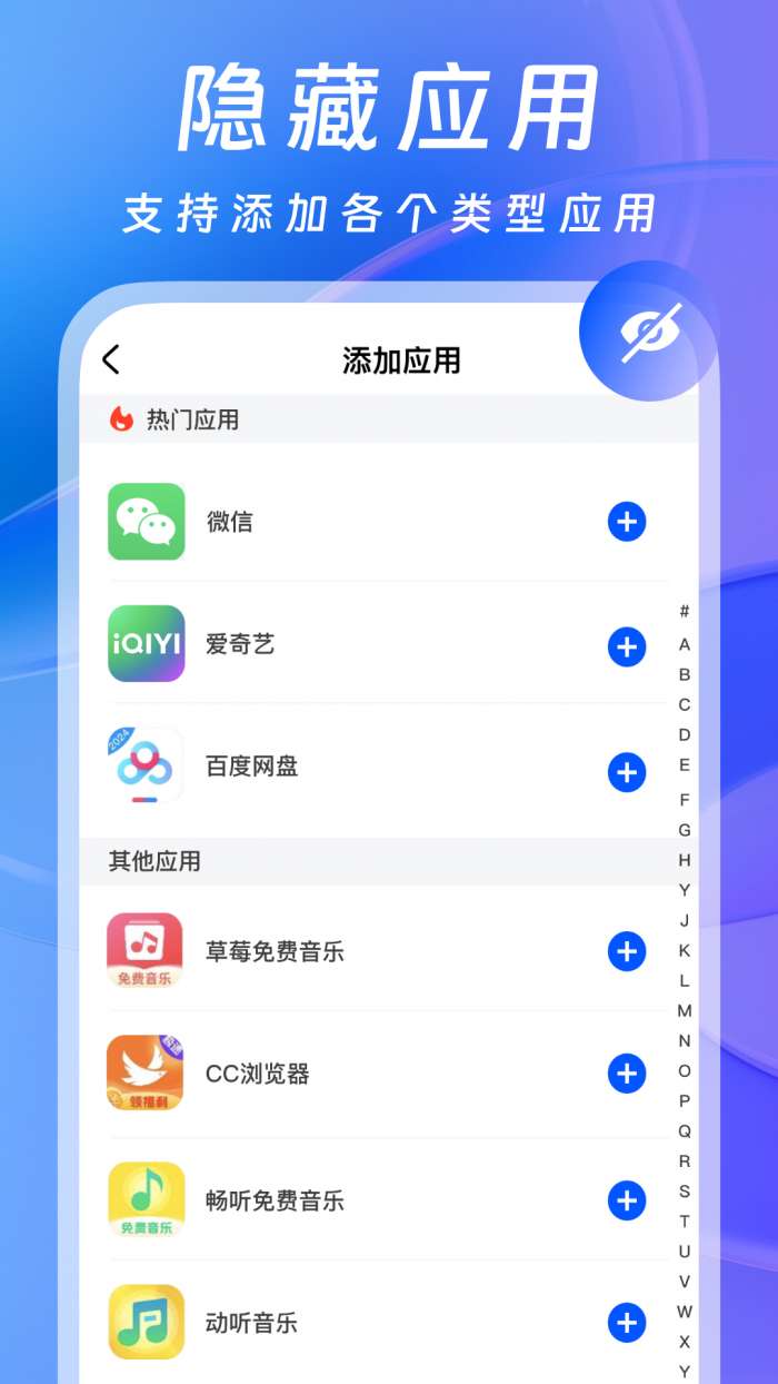 1、【隐藏应用】支持添加各个类型应用。