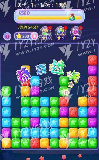 2.缤纷多彩星星等你来消除,合理规划布局最大限度消除尽可能多的星星,获得高分解锁更多挑战。