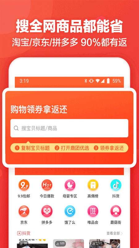 鹿团优选这是一个特别有高质量的高品质的商品购物APP,所有大量的新品热品你都可以在这里买到。新手注册还会享受特别多的优惠券可以领取,此外把它分享给自己的好友,你还可以赚取高佣福利呢。所有的双重折扣都能够满足你的购物需求,你还在等什么呢?