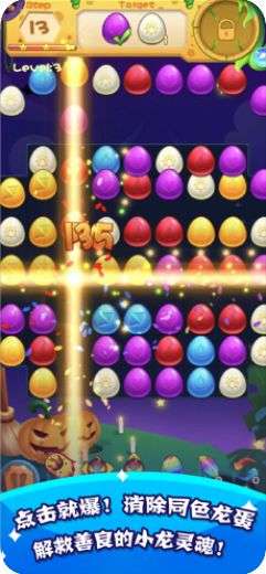 2.消除不同颜色的恐龙蛋,场景中会有很多的趣味设置,还有着不可摧毁的道具,需要多多注意。