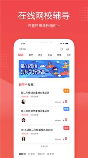 网课辅导app推荐今天为大家带来的是手机网课辅导的软件,你能在手机上进行网课学习,有各种精选的课程视频,海量的学习资料都是免费提供给用户学习的,软件有多种学习模式,你能选择在线视频,也能选择直播网课,直播网课还能看回放哦,是你手机网课辅导的必备软件。