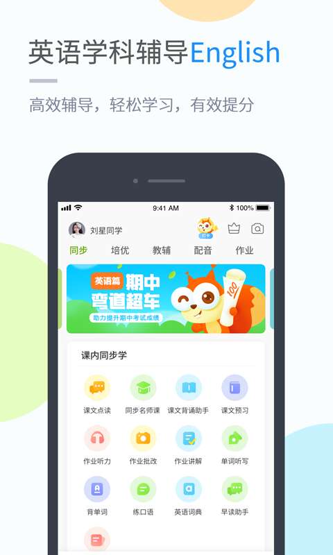 2.同步教科书中的单词,包括发音,图片,例句等,口语评测发音。