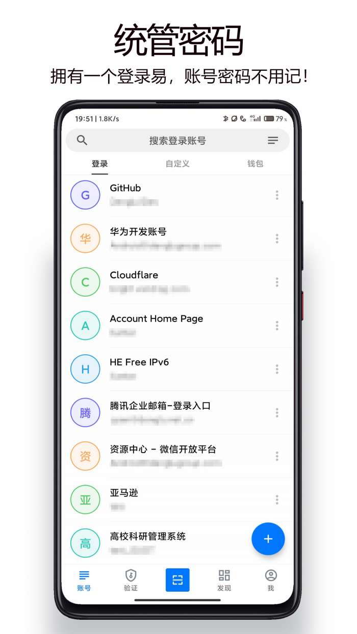 登录易是一款能够帮助每一个用户在平台上进行安全身份访问的应用软件,在平台中您可以享受到各种登录方式的便捷服务,能够让您在进行各种设备登录的同时,无需进行输入密码就可以直接进行登录,让您摆脱忘记密码的烦恼,让每一位用户都能通过平台更好的进行了解数据内容以及密码管理等各种服务内容,帮助您在平台上进行各种账号的管理以及密码的备份,帮助每一位健忘的朋友能够通过平台来更好的进行使用,让自己的生活上得到更加便利的服务