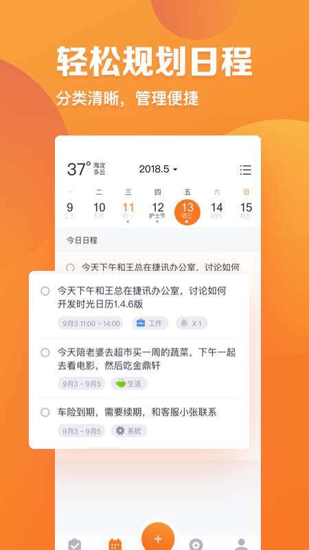 1、指尖时光可以对用户一天的任务清单进行简单有效的管理,让客户找到用最短的时间做最多事情的规律。